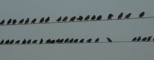Październik to czas, ostatnich ptasich sejmików, które przygotowują się do odlotu z naszego kraju. Jest ich mnóstwo na drutach energetycznych WN. Głośno gadają po swojemu, naradzają się, aż w pewnej chwili milkną i odlatują wszystkie na raz.