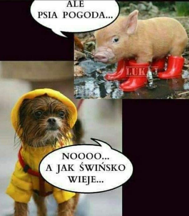 Psia pogoda. Na taką pogodę to nawet psa się nie wygania. Łżesz jak pies. Pieskie życie. Na psa urok. Zły jak pies. Wierny jak pies.